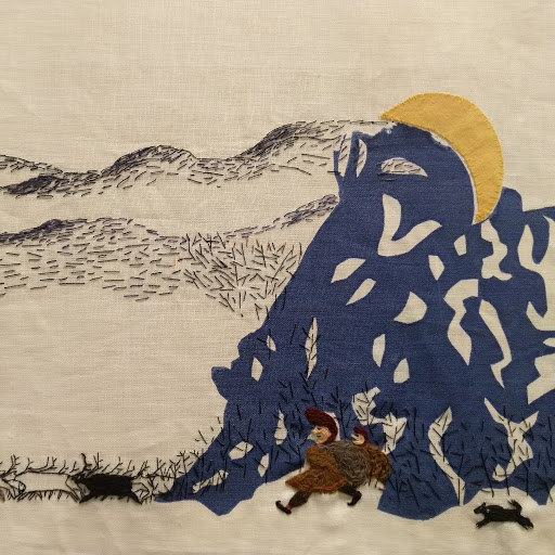 Vi fikk så høre litt om den aktuelle utstillingen "Historier. Tre generasjoner samiske kunstnere" før vi studerte den på egen hånd. Det var mange som ble spesielt fascinert av broderiet "Historjá" av Britta Marakatt-Labba.